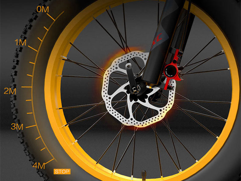 Frein à disque hydraulique ? Adoptez le disque d'huile hors tension DYISLAND, le double système de freins à disque avant et arrière, le disque de frein à disque S, la dissipation rapide de la chaleur, le freinage d'urgence peut également freiner efficacement et en douceur.
