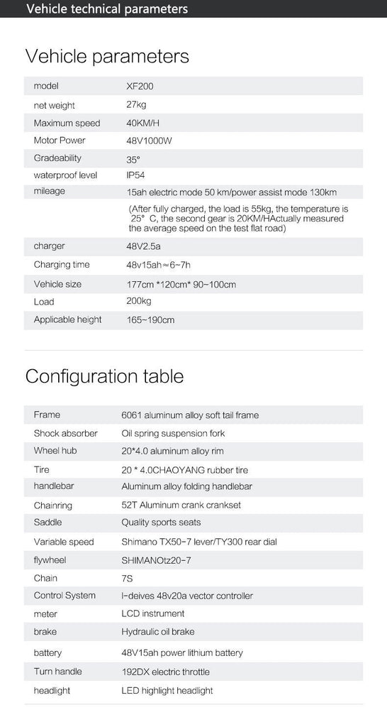 Le vélo électrique XF200 est équipé d'un moteur sans balais à grande vitesse de 1000 W, doté d'un couple élevé et d'une forte capacité de montée. L'ascension de la montagne n'est plus un chariot ascendant.